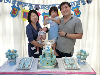 We saw another little baby over the weekend... Devon! He is Mummy's good friend, Diana's boy! He is dressed so smartly to celebrate Katelyn, his sister's birthday together. He started crying a little when Mummy carried him, oops.